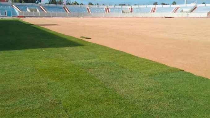 وتضمن تثبيت العشب الطبيعي للملعب مراحل رئيسية بدأت بإعادة تشكيل وهيكلة أنظمة صرف مياه الأمطار و الري وكذلك بإعداد نظام متكامل لإدارة عملية السقي، إلى جانب تسوية سطح التربة لإنشاء سطح مستوٍ جاهز لتثبيت رولات العشب الطبيعي.