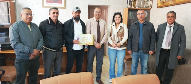 في ختام هذا اللقاء سلم السيد رضوان الحسني المدير الاقليمي لوزراة التربية والتعليم الأولي والرياضة الى الفنان العوني الشعوبي شهادة تقديرية وتذكارا يؤرخ لهذه المبادرة النبيلة التي تستحق الإشادة والتنويه .