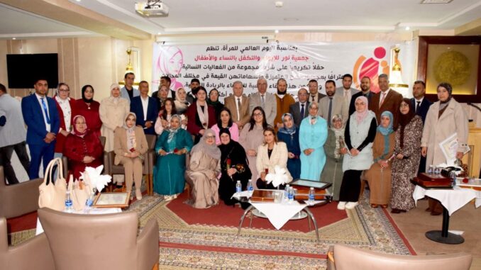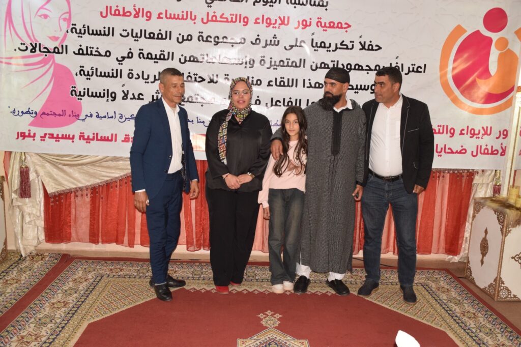 بمناسبة اليوم العالمي للمرأة، وبحضور السيد وكيل الملك لدى المحكمة الابتدائية بسيدي بنور والسيد رئيس المحكمة، نظّمت جمعية “نور للإيواء والتكفل بالنساء والأطفال” حفلاً تكريمياً متميزاً احتفاءً بمجموعة من الشخصيات النسائية البارزة في مدينة سيدي بنور. كما تم خلال الحفل تكريم عدد من الأطر القضائية العاملة في مجال العدالة.