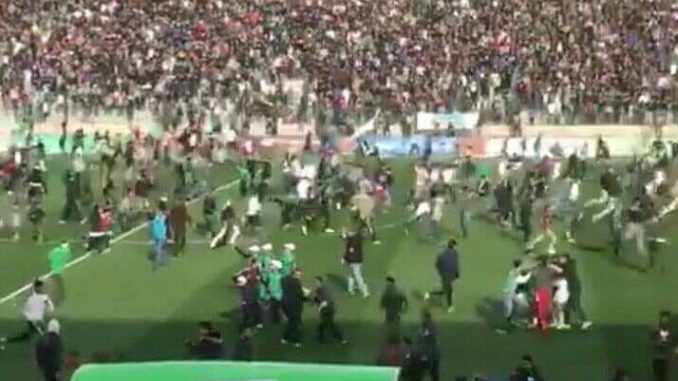 وشهدت نهاية المباراة أحداثا مؤسفة، حيث اقتحمت جماهير أرضية الملعب، واندلعت أعمال شغب وفوضى.